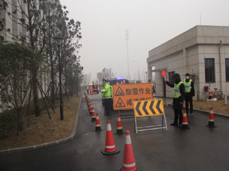 本次演練以接交警指令,銀湖路匝道積雪,需臨時封道清除積雪為背景,采取桌面推演與實戰(zhàn)演練相結(jié)合。共分為三個環(huán)節(jié),先是通過電子屏幕作銀湖路臨時封道作業(yè)桌面推演,全面展示交通應(yīng)急力量應(yīng)對多樣災(zāi)種綜合應(yīng)急處置能力。再到情報板信息發(fā)布模擬演練,針對路面積雪情況變化及時同步更新情報板提示信息,配合啟用高音喇叭提醒過往車輛。最后進(jìn)行道路除雪實操演練,指令下達(dá)后,應(yīng)急人員、機械車輛迅速趕到園區(qū)北側(cè)輔路集結(jié)完畢,在交管車輛的指引下,向模擬積雪路段行進(jìn),開始投入緊張的除雪鏟冰作業(yè)當(dāng)中。