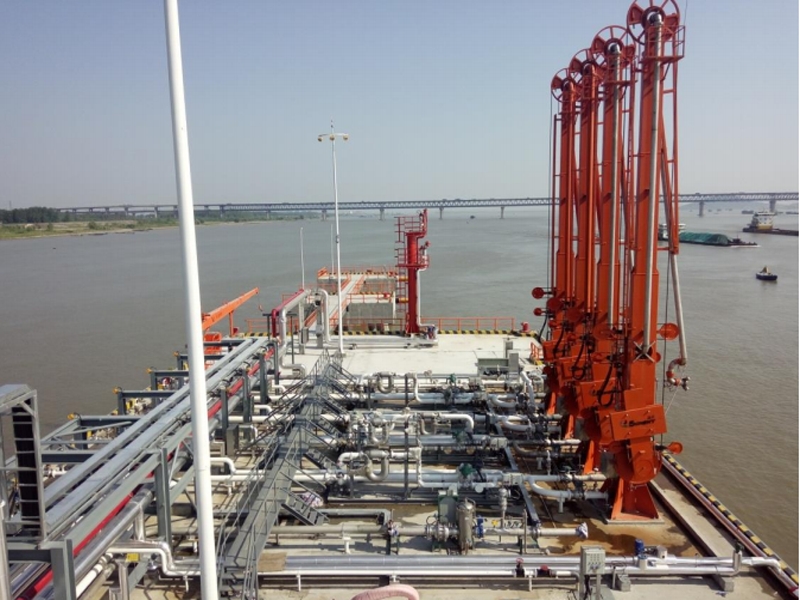 原華誼液體化工碼頭因占用蕪湖長江三橋輔助通航孔和備用通航孔,需進(jìn)行遷建。遷建項(xiàng)目位于長江下游大橋水道左岸,蕪湖長江大橋上游 1.4km 處,建設(shè)規(guī)模為原規(guī)模還建 5000噸級和 500 噸級化工泊位各 1 個及后方管廊等配套實(shí)施,碼頭年吞吐量 90.7 萬噸,其中出口甲醇、醋酸、醋酸乙酯等合計 73 萬噸,進(jìn)口乙醇 17.7 萬噸。