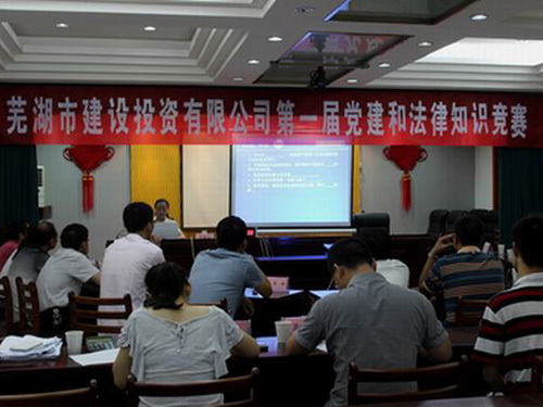 為深入學習貫徹黨的十八大會議精神,推進“六五”普法工作,重溫黨史,落實市委、市政府有關黨風廉政建設工作各項任務,進一步提高全公司干部員工的廉潔自律和依法辦事意識。2013年6月28日,時值黨的生日來臨之際,市建投公司舉辦了“第一屆黨建和法律知識競賽”活動,比賽知識范圍涵蓋黨的十八大會議內(nèi)容及報告、黨章黨史、《市建投公司干部員工從業(yè)提醒96則》、“六五”普法知識、省市黨紀廉政建設規(guī)范性文件等。