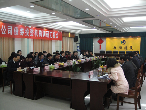 3月16日,公司邀請全國證券、基金、保險(xiǎn)、銀行等23家金融機(jī)構(gòu)對我市和公司進(jìn)行了實(shí)地調(diào)研。市政府副秘書長張東出席了調(diào)研座談會。市發(fā)改委和公司負(fù)責(zé)同志分別向機(jī)構(gòu)投資者介紹了蕪湖市經(jīng)濟(jì)社會發(fā)展情況和“十二五”發(fā)展規(guī)劃、蕪湖建投發(fā)展歷程及投融資情況,并就機(jī)構(gòu)投資者關(guān)心的問題一一作出解答。